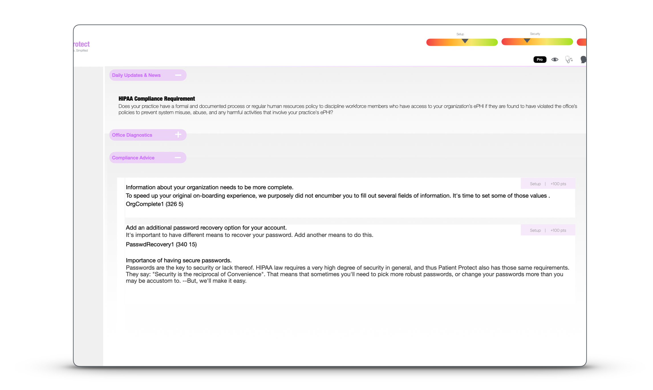 When OCR or an auditor requests specific documents, response time is the difference between calm and crisis. Record Management indexes everything; “show me our most recent SRA” or “show me the BAA with vendor X as of 2024” are one-click queries.